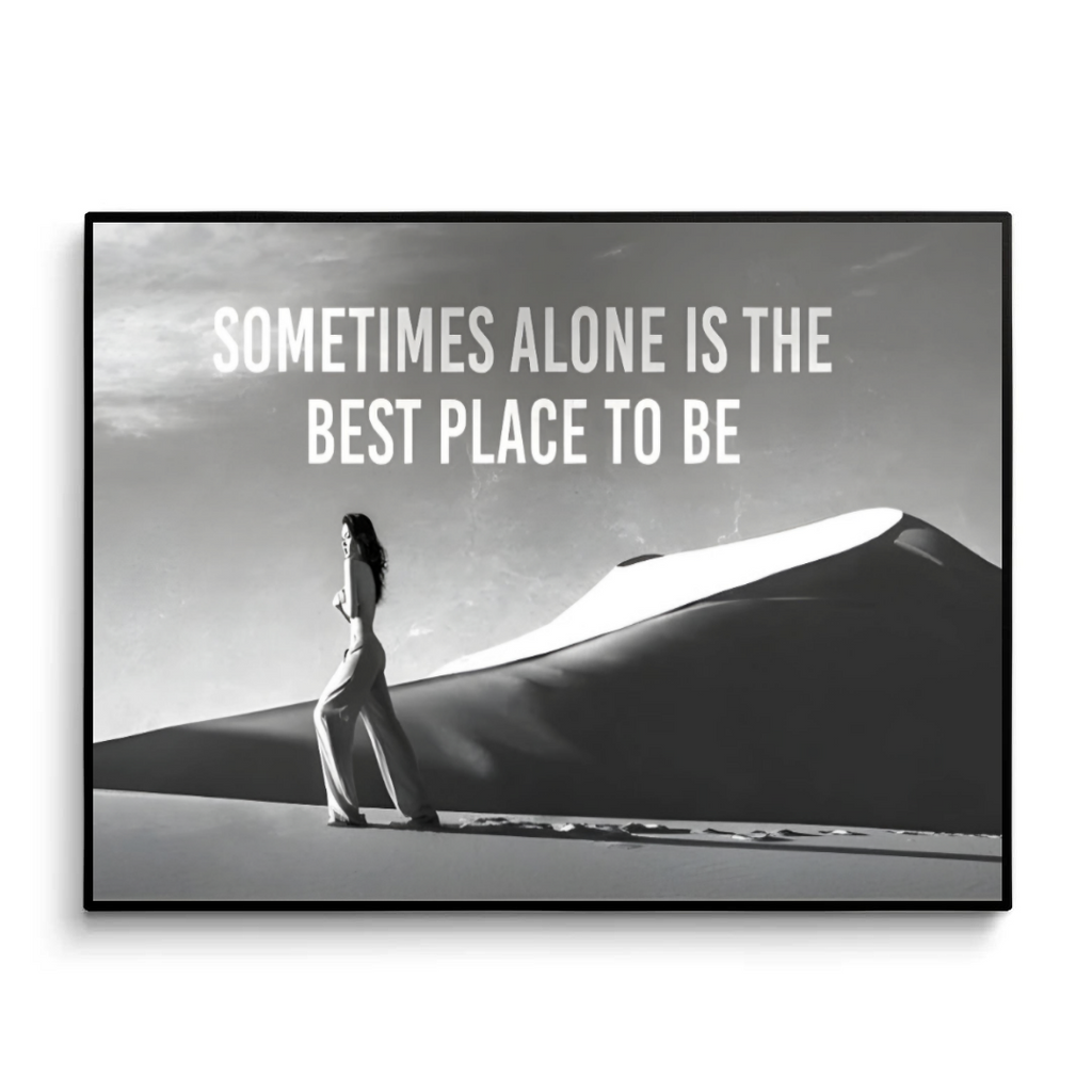 Sometimes Alone Canvas Wall Art captures the power of solitude and self-discovery. The black and white tones create a calm, minimalist atmosphere, while the quote reminds you that peace often comes from within.