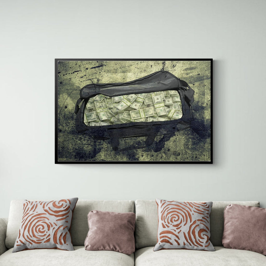 Turn your walls into a symbol of ambition with the Money Bag Motivational Canvas Wall Art. This powerful design features a duffle bag overflowing with stacks of cash, representing wealth, success, and the rewards of persistence.